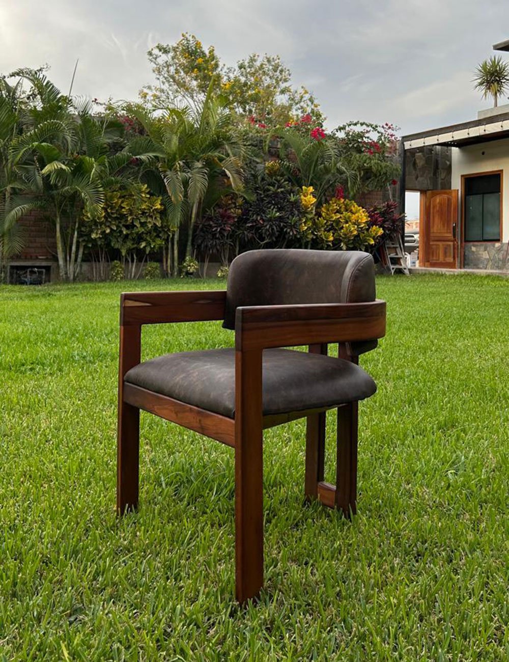 S/750.00La silla tallada a mano con madera Aguanomasha y elegante tapizado en cuero uruguayo de lujo, con una estructura sólida y suavidad en las curvas del respaldar que resalta la elegancia y confort.