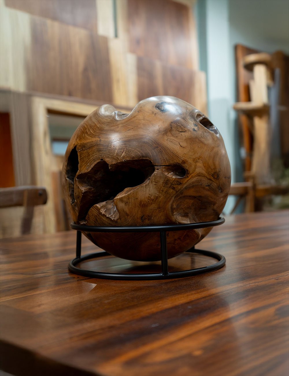 Hecha de madera dura de Aguanomasha con un diseño único por su tallado a mano resaltando las vetas y la forma natural de la madera.
